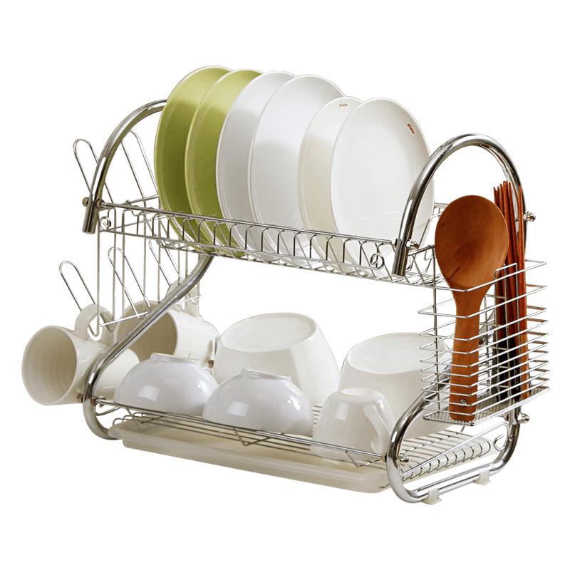 Ourunzhe 2-stöckiger Küchen-Geschirrtrockenständer