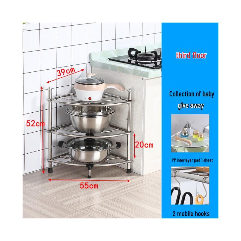 Mid-Century 3-Tier Steel-Wood Corner Storage Shelf