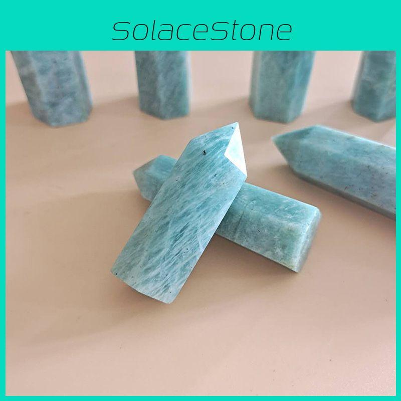Stunning 1pc Natural Blue Amazonite Stone Column Quartz Crystal Wand For Healing