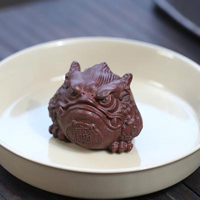 Teetier aus violetter Tonerde - Dreibeinige Goldkrötenfigur, Zen-Teezeremonie-Dekor & Patinaentwicklung, Kulturelles Glücksgeschenk