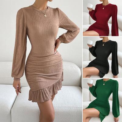 Frauen Herbst Winter Mini Kleid Pullover Laterne Langärmelige Kleider Hüftwickel Rock Kleider