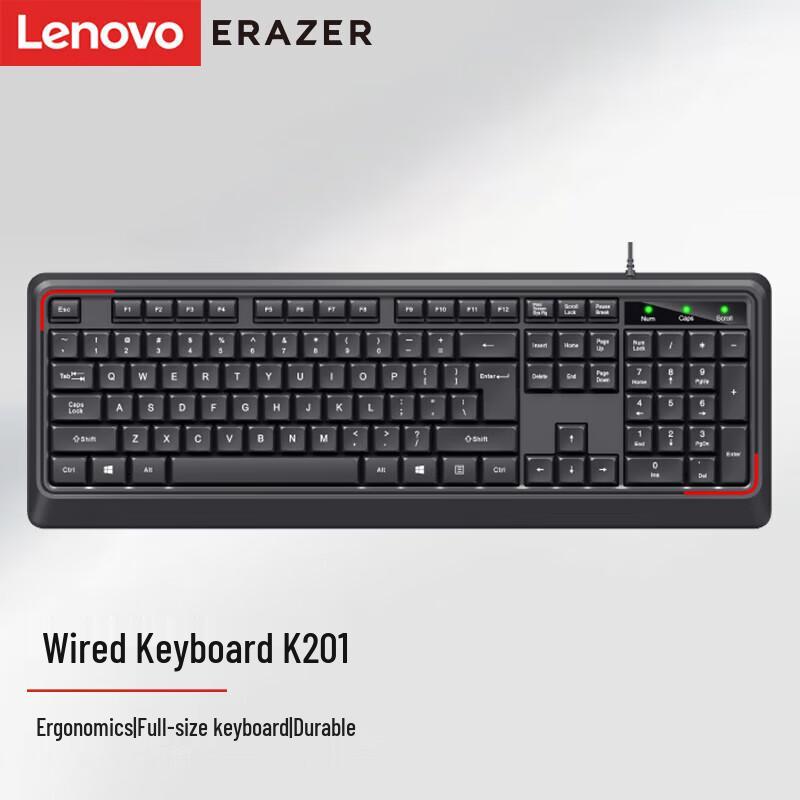 The Lenovo K201 is a reliable full-size wired keyboard designed for business and office use. Featuring a plug-and-play design, it offers hassle-free connectivity and compatibility with Windows systems. Its durable ABS keycaps and classic black finish make it a practical choice for everyday tasks.