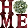 Rustic Home Wooden Wreath Decor Set In Black Red Checkered And Wood Grain For Seasonal Celebrations