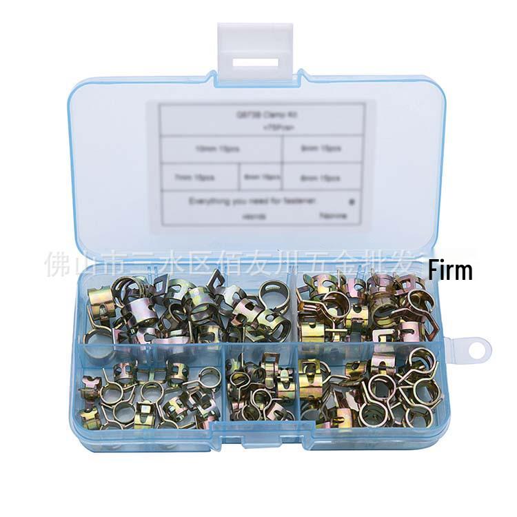 75-Piece Color-Plated Zinc M6-10 Spring Hose Clamp Set