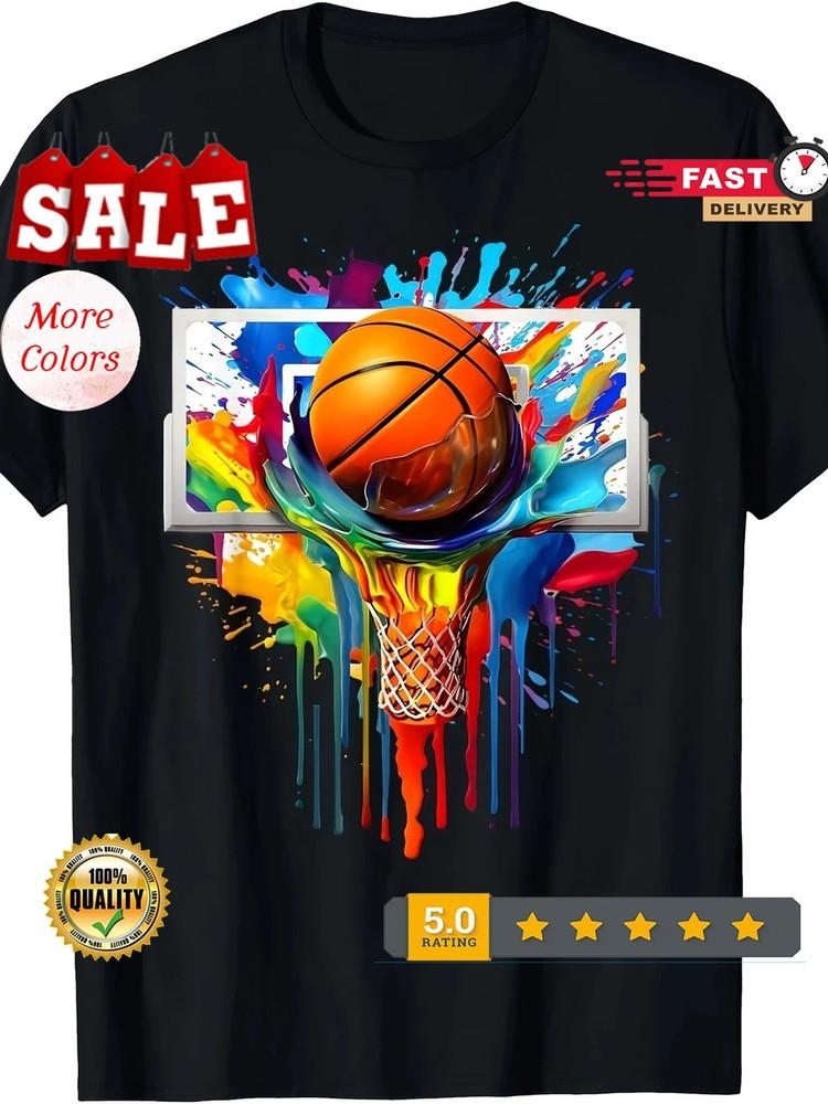 Herren Basketball Dunk Batik Splash Print Baumwoll-T-Shirt - Schwarz