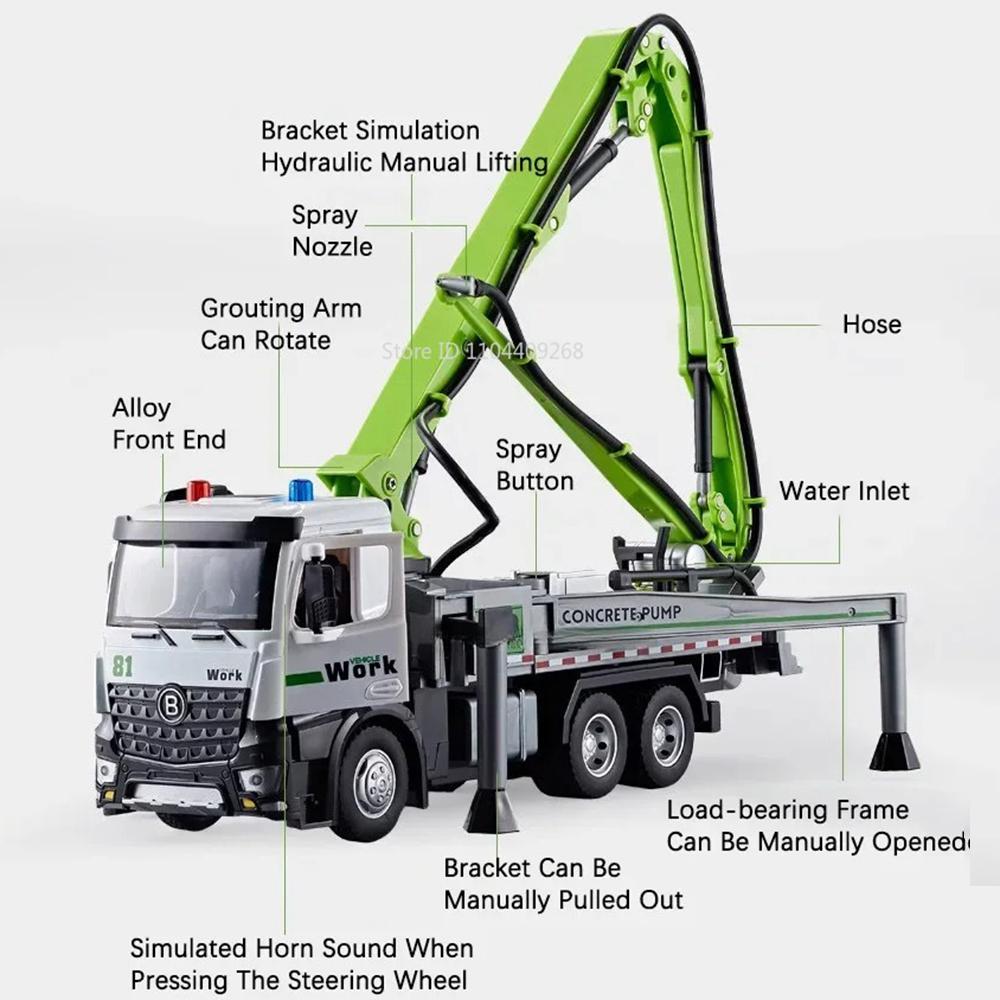 1:24er Maßstab Zementkipper Modell Spielzeugauto Türen zu öffnen Wassersprühfunktion Musik Licht Miniatur Fahrzeugmodelle Metall Druckguss Jungen Spielzeug