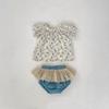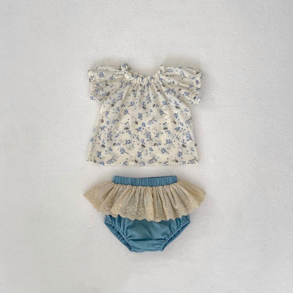 Charmantes 2024 Sommer Baby Mädchen Blumenmuster Kurzarm Bluse Und Rüschenshorts Outfit Set Für 1 Bis 3 Jahre