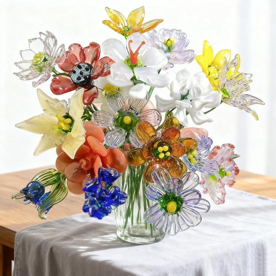 Handwerkliche Schönheit: Handgefertigt von erfahrenen Handwerkern, wird jede Glasblume sorgfältig mundgeblasen, um die Essenz der Schönheit der Natur einzufangen, wodurch jedes Stück zu einem einzigartigen Kunstwerk wird.