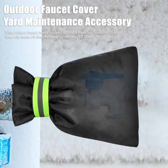 Einfache Installation & sicherer Sitz: Schieben Sie die Abdeckung einfach über Ihren Außenhahn und ziehen Sie den verstellbaren Riemen für einen passgenauen Sitz fest.; entwickelt, um Standard-Gartenzapfstellen, Schlauchanschlüsse und Wasserhähne aufzunehmen, mit verbesserten Abmessungen für vollständige Abdeckung und zuverlässigen Schutz.