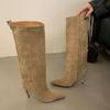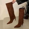 Mode Mode Dünne Absätze Schuhe Party Damen Kniehoch Moderne Stiefel Weiblich Spitze Zehen Flock Damen Lange Stiefel Slipper Schuhe Pumps
