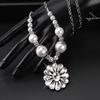 Stylish Women's Long Pearl Necklace Featuring Floral Design And Gold-plated Accents