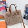 Women Faux Fur Crossbody Bag Adjustable Strap Handbag Solid Color Clutch Purse Satchel Purse for Travel Party