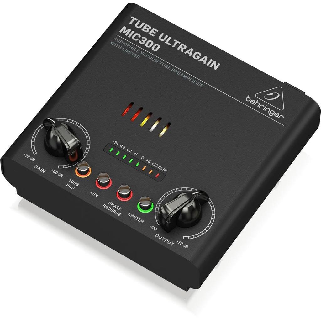 Behringer MIC300 Vacuum Tube Microphone Preamp with 12AX7 Vacuum 48V Phase and 20dB Pad Switch Tube, Limiter, Phantom, Switch,