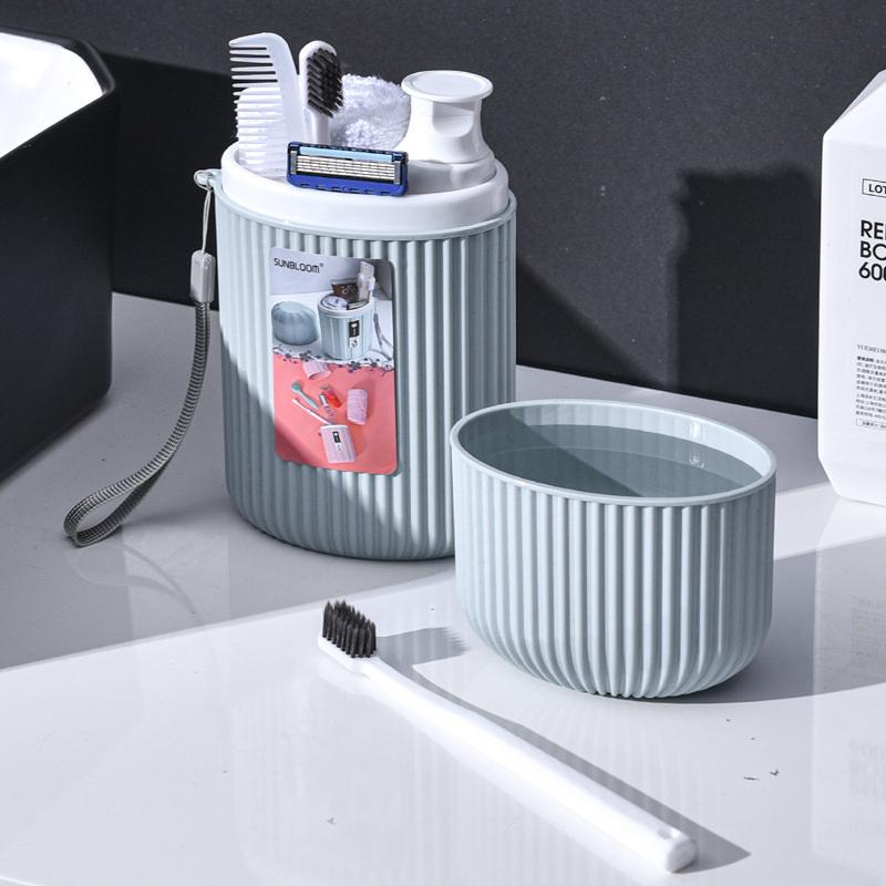 Tragbares Reise-Mundspülbecher-Set - Niedrige multifunktionale Aufbewahrung mit Zahnbürstenetui (Mit Deckel) für Geschäftsreisen