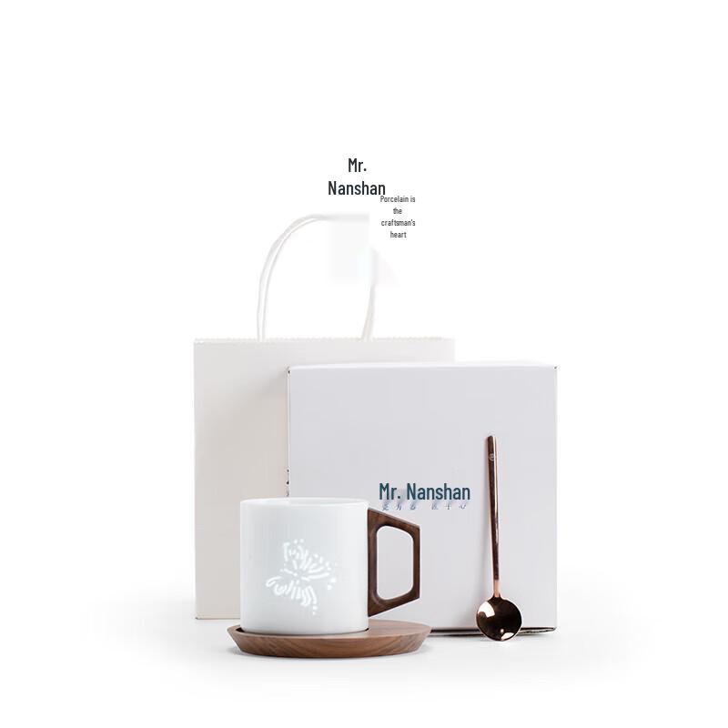 Nanshan Mr. Love Flower Translucent Ceramic Mug with Spoon and Coaster
