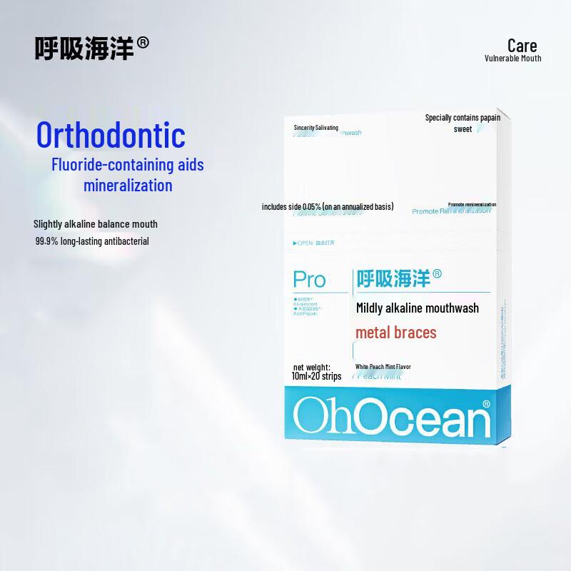 Breath Ocean Orthodontic Mouthwash with Fluoride - White Peach Flavor
