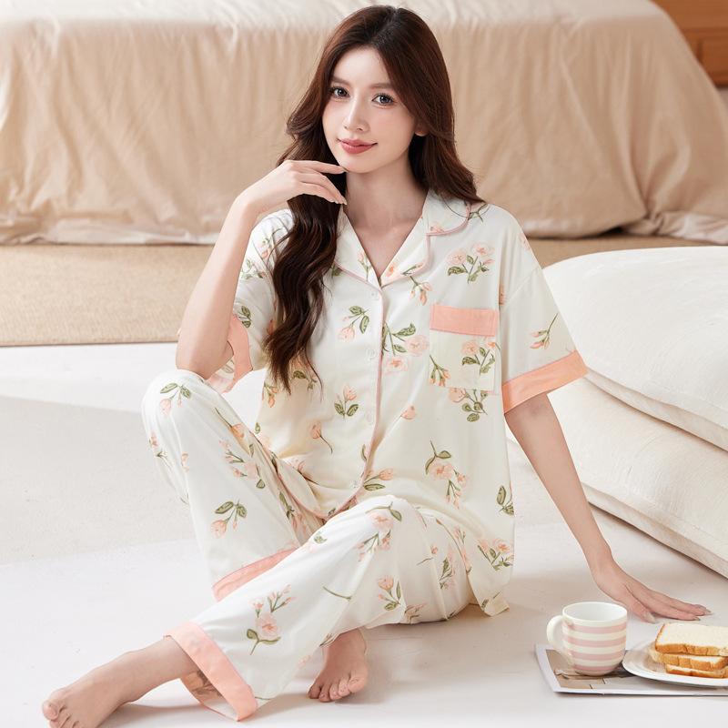 Rose Blume Imitation Baumwolle Pyjama Damen Sommer Kurzarm Hose im Mutter Temperament Loungewear Dünner Anzug