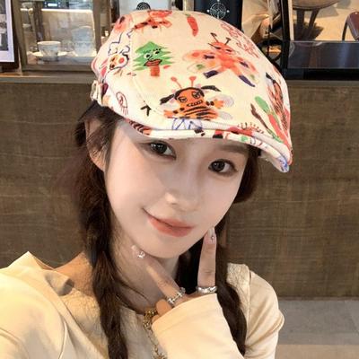 Japanische Niedliche Graffiti Front Hut Mädchen Persönlichkeit Retro Kind Spaß Lustig Kurze Krempe Malermütze Vielseitige Baskenmütze