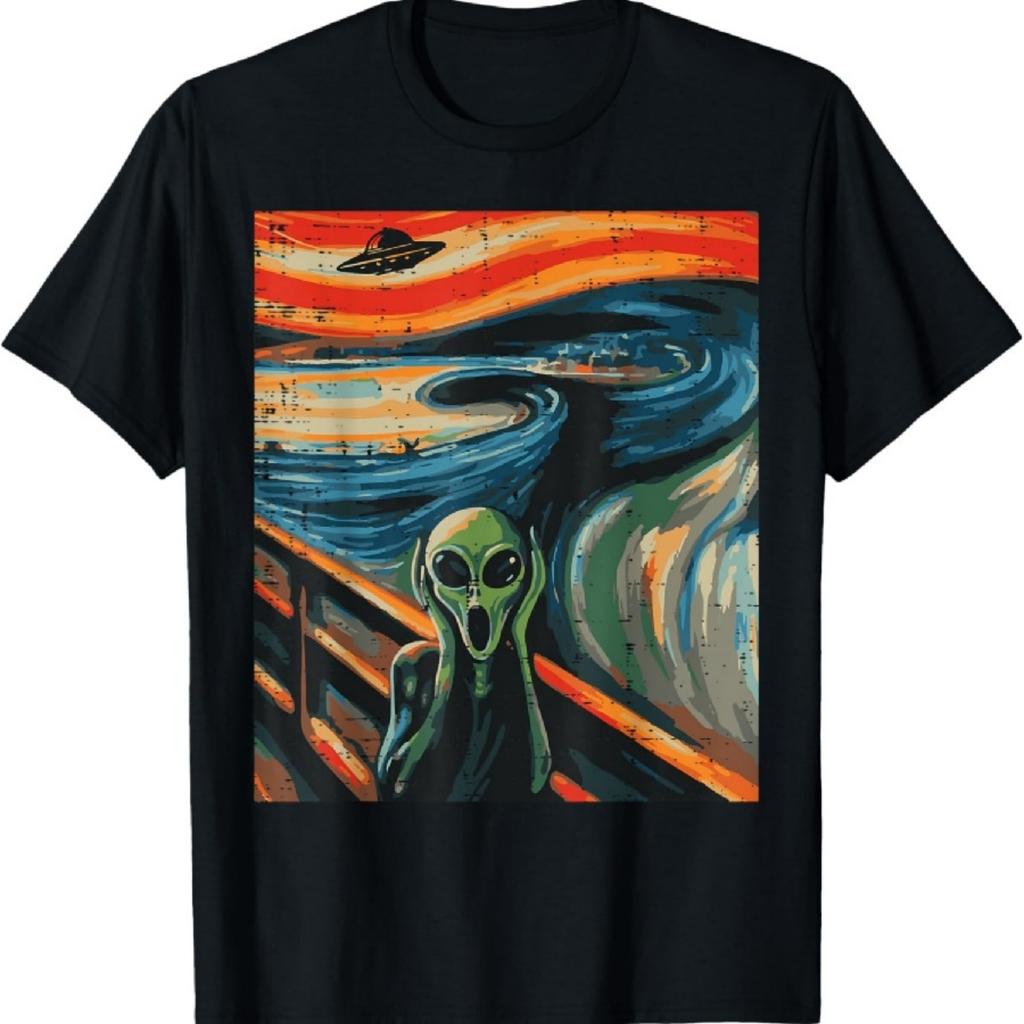 Alien Schrei Gemälde Lustiges UFO Weltraum Kunst Damen Herren Kinder T-Shirt