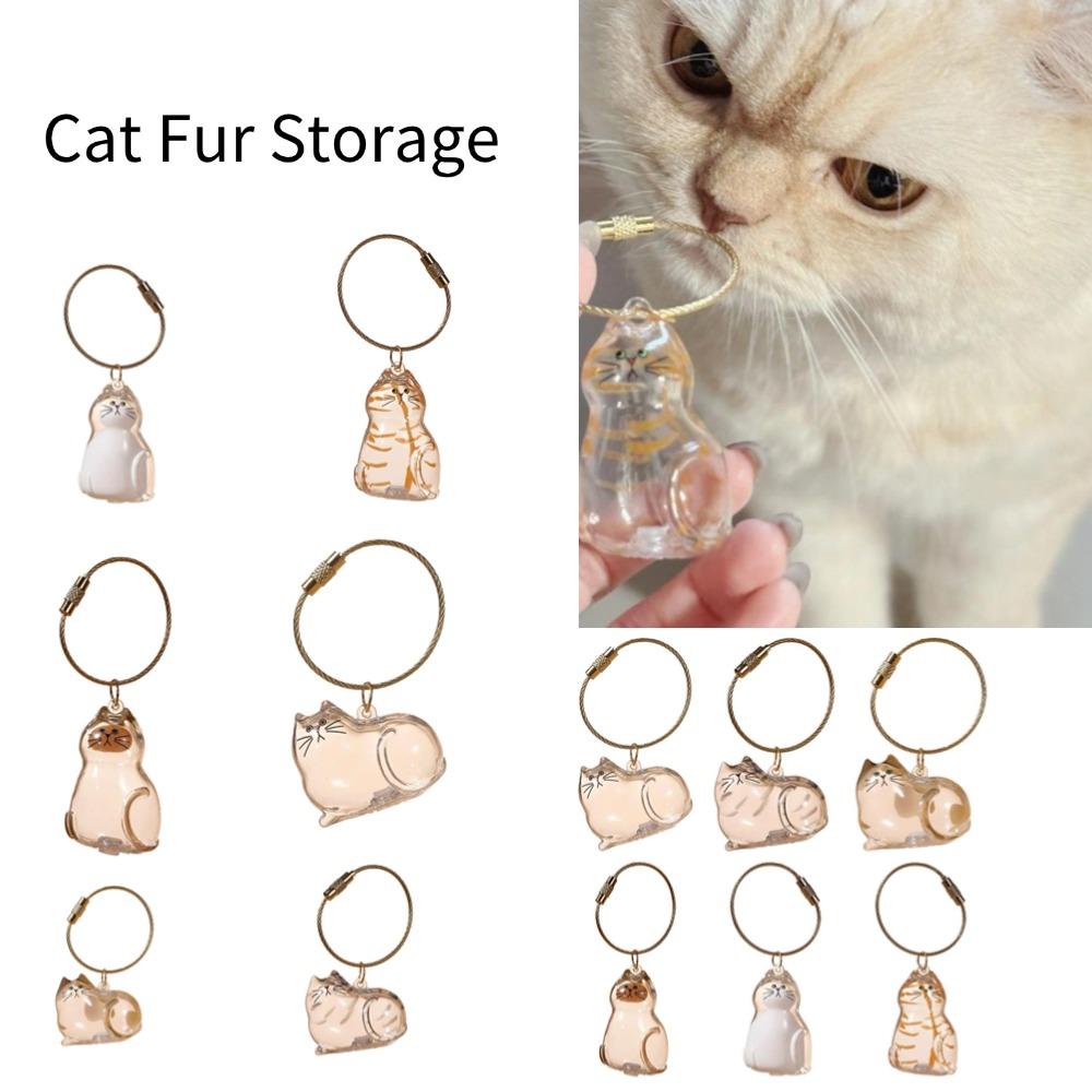 Cat hair storage bottle: 6 cat styles to meet different needs. Cat size: approximately 4.5 centimeters/1.8 inches, made of plastic material, with a metal keychain