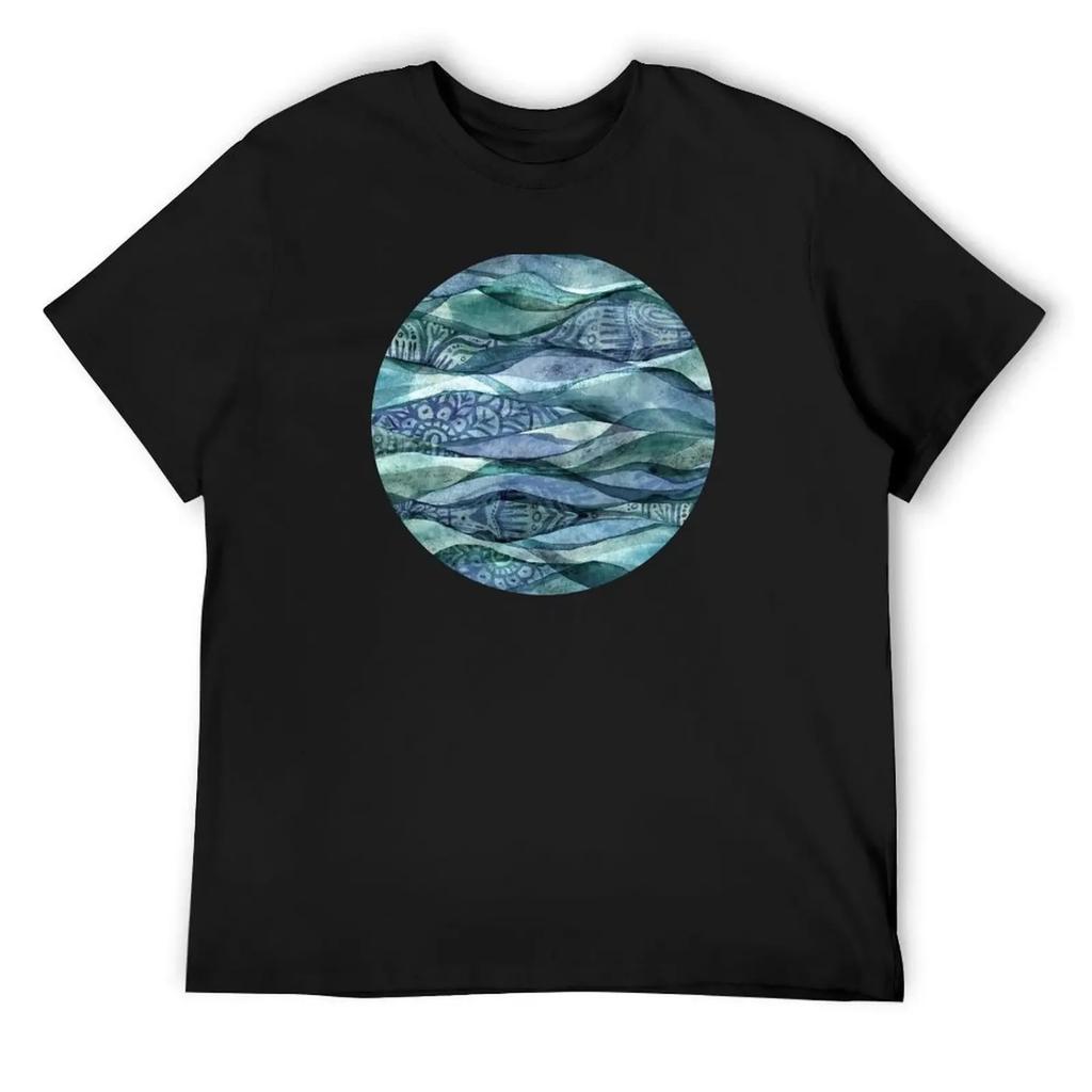 Boho Ozean bei Dämmerung Aquarell Abstrakt T-Shirt Bluse Anime T-Shirt Jungen Tierdruck Baumwoll-T-Shirt Männer