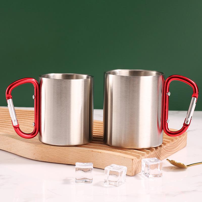 220ml Edelstahlbecher für Camping, Reisen, Outdoor-Becher mit Henkel, Karabiner, Klettern, Rucksackreisen, Wandern, Tragbare Becher