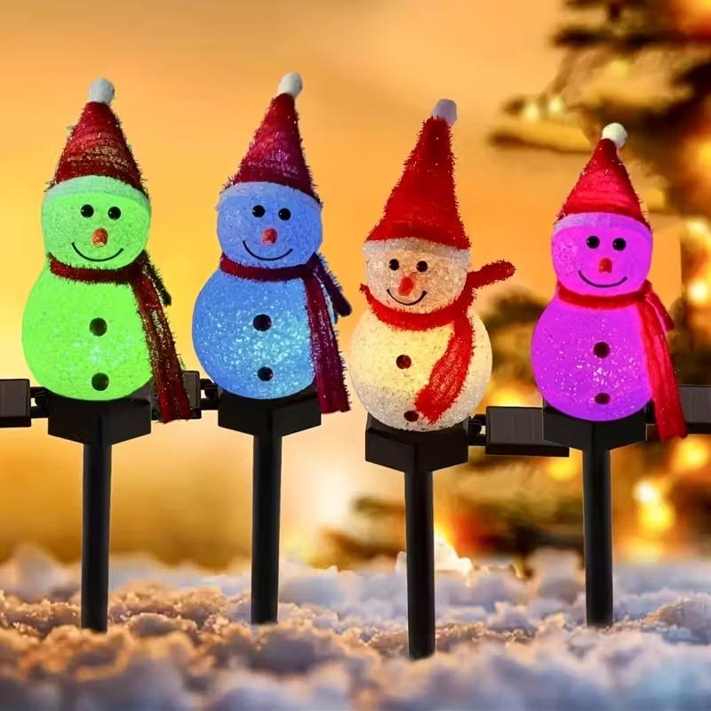 Solar Schneemann Weihnachtsbeleuchtung für Außendekoration Solarbetriebene Schneemann Gartenstecker Lichter für Weihnachten und Garten