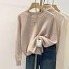 European milk apricot crew neck sweater women's 2025 spring Korean version soft waxy bottoming shirt small age-reducing solid color top