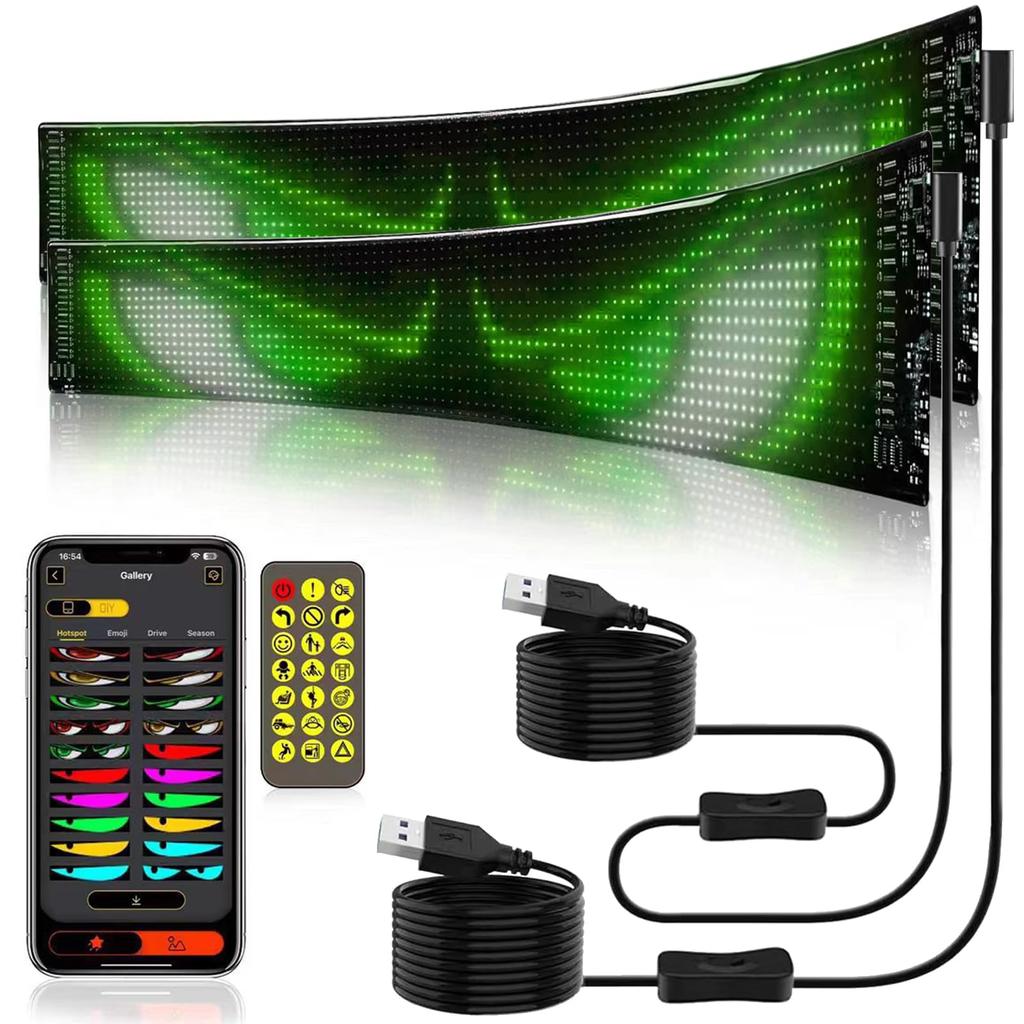 High-Pixel LED Devil Eye Light: This car devil eye light features a programmable flexible LED display with a high pixel count for a clearer image. The devil eye light is made of a 2mm thin, flexible LED display that can be bent and folded to fit a variety of surfaces.