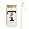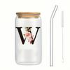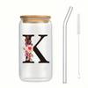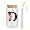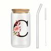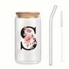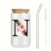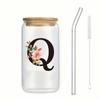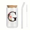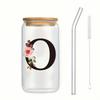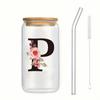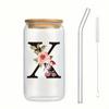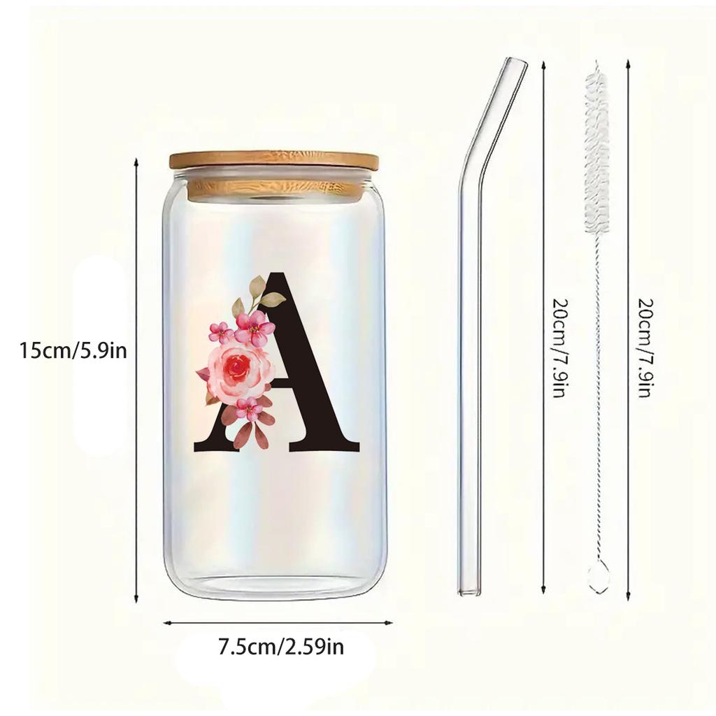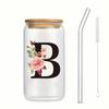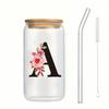 500ml Buchstaben Blume A-Z Kaffeetassen Büro Zuhause 16OZ Glastasse mit Bambusdeckeln & Strohhalm Geburtstags- Valentinstagsgeschenke Tasse Frauen