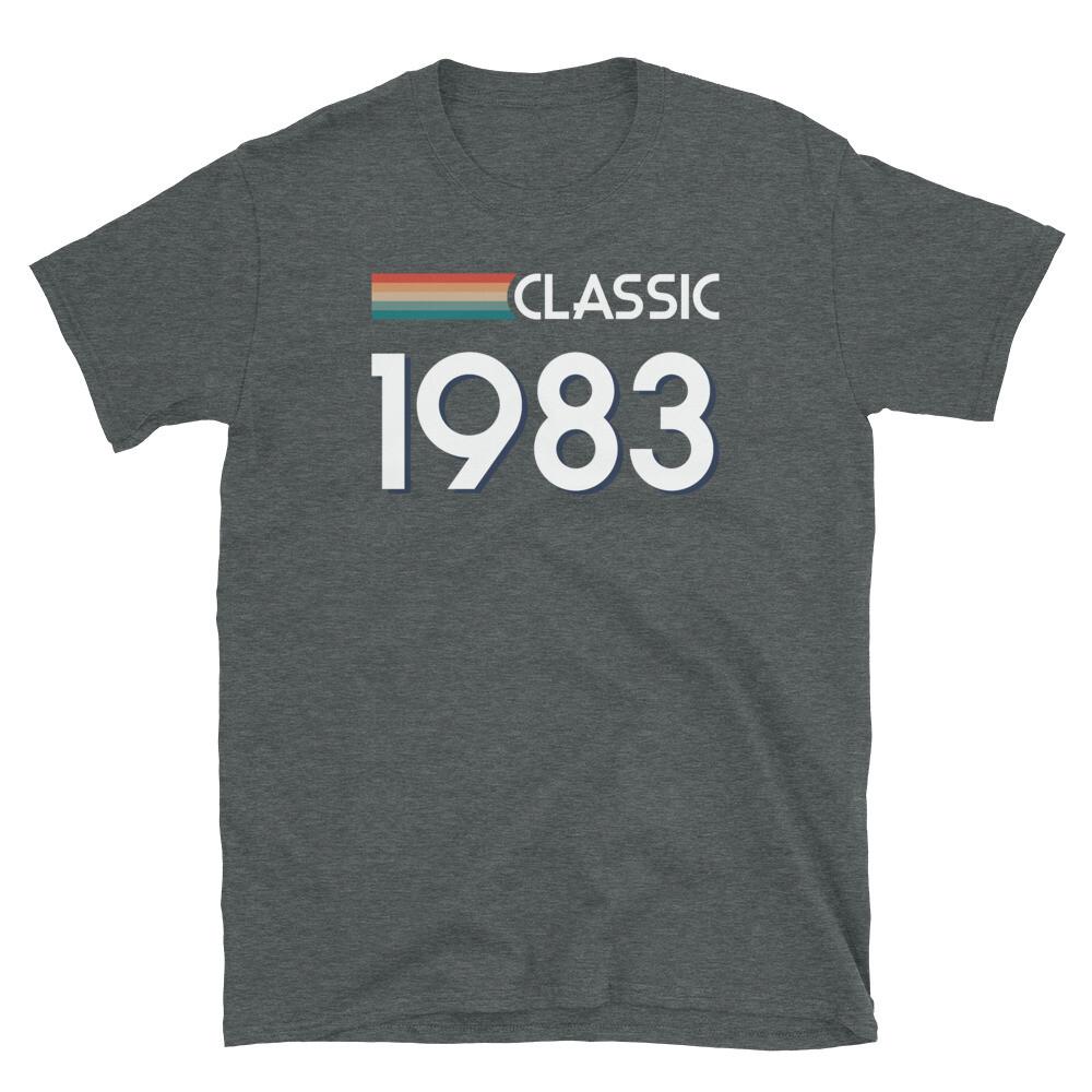 Klassisches Retro-inspiriertes Grafik-Geburtstags-Vintage-Unisex-T-Shirt mit kurzen Ärmeln 1983