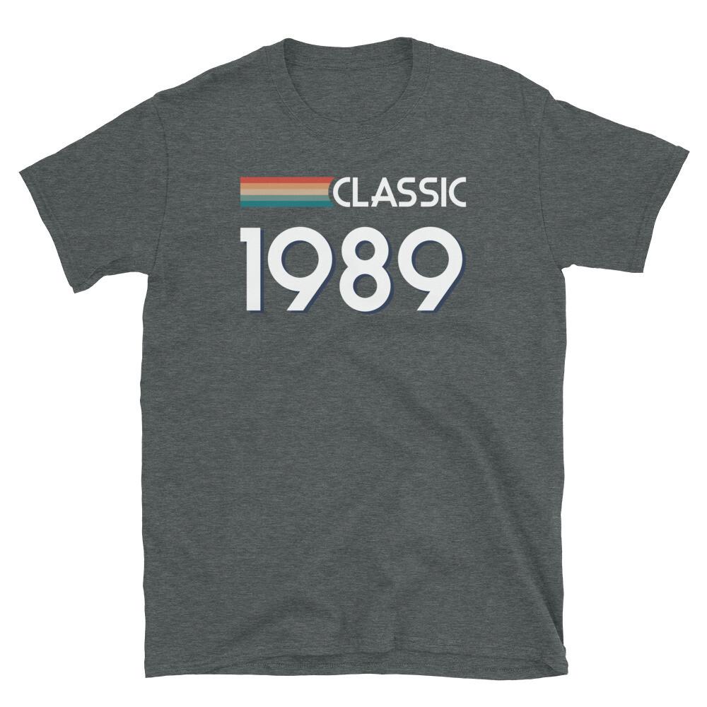 Klassisches Retro-inspiriertes Grafik-Geburtstags-Vintage-Unisex-T-Shirt mit kurzen Ärmeln 1989