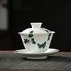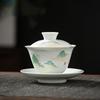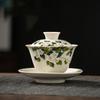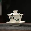 Ceramic Handmade Kung Fu Zen Gaiwan, Creative Hand-painted Chrysanthemum Tea Set, Office Tea Bowl with Saucer, Drinkware