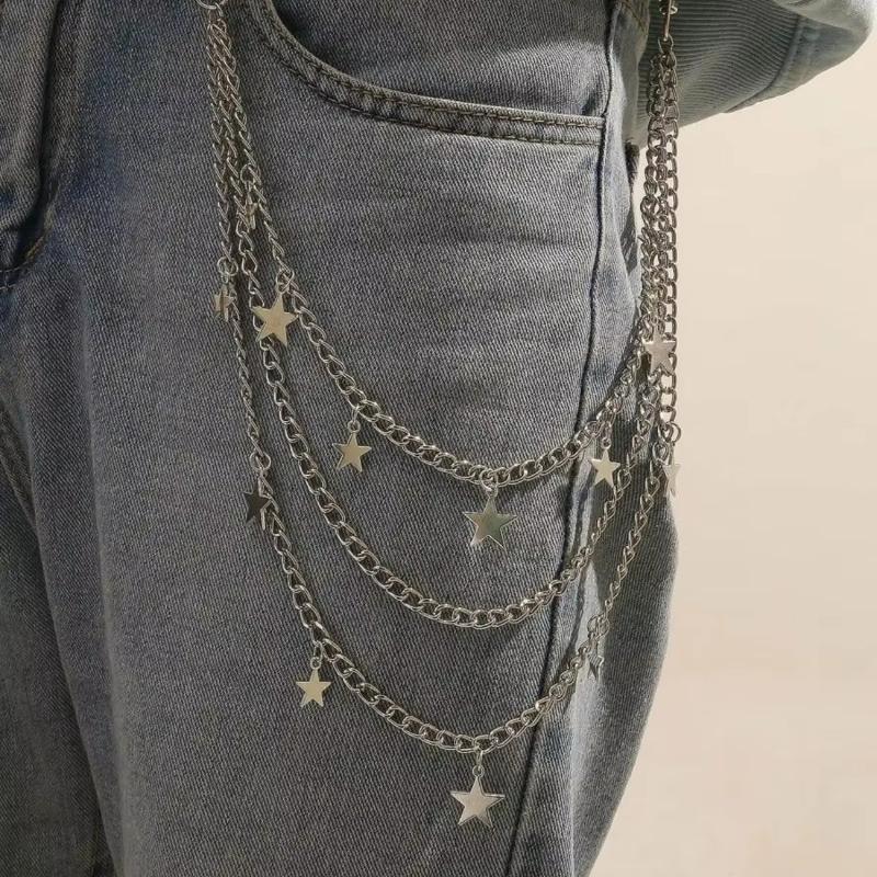 Herren Y2k Sternanhänger Layered Streetstyle Hose Jeans Kette Gürtel