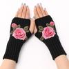 Botvotee Y2k Accessories Arm Warmers Sleeves for Women Flower Fashion Half Finger Knit Winter Arm Guard Black Fingerless Gloves