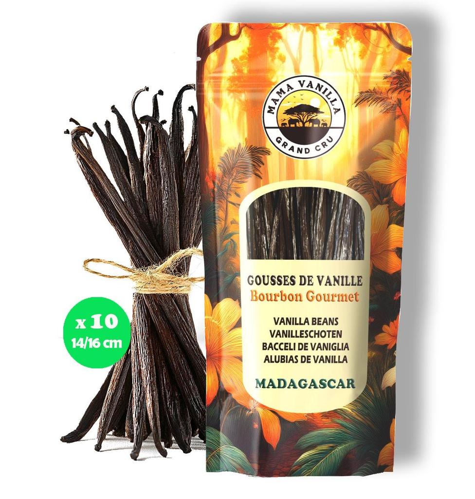 10 Gousses de VANILLE BOURBON GOURMET de Madagascar 14/16 cm Gousses Fraîches Longue Conservation, Sans Arômes Artificiels