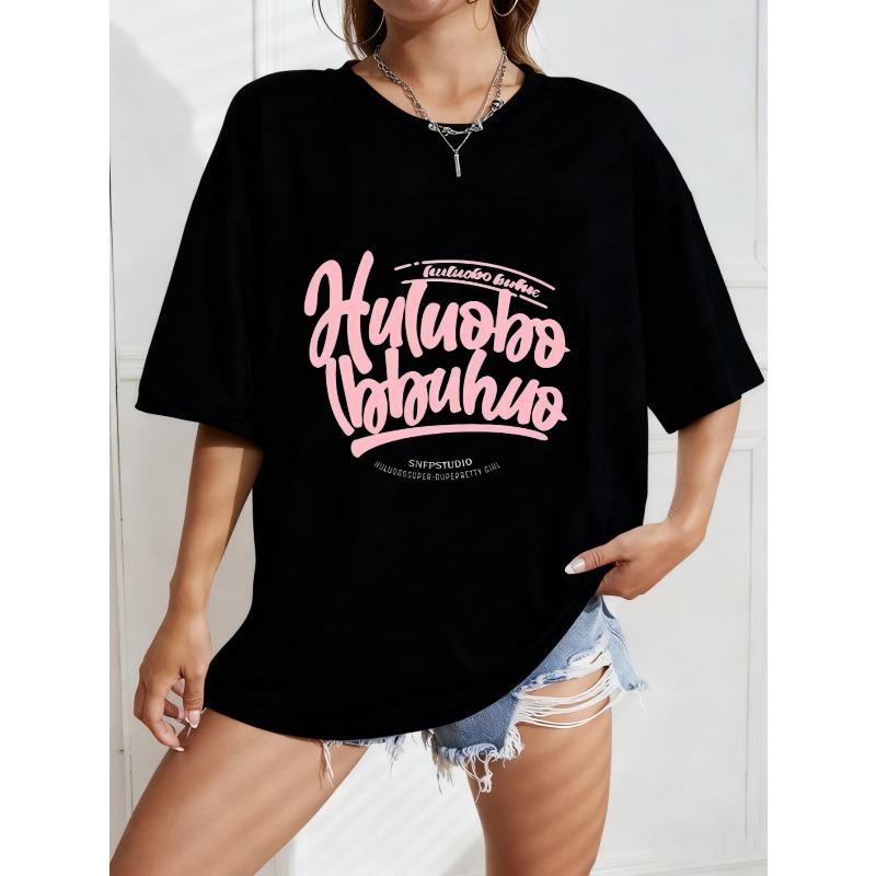 Weißes Oversized T-Shirt mit pinkem Hyluoho Ilobuhuo Grafikdruck für Freizeitkleidung und Streetstyle