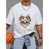 Weißes T-Shirt Tiger und Vögel Blumenuhr Design für Freizeitkleidung