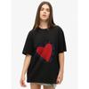 Übergroßes Damen-T-Shirt mit kurzen Ärmeln, rotem Herz und Textaufdruck "Love is A Kiss on The Forehead"