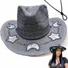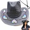 Suncatcher Cowgirl Straw Prism Hat Hand-Woven Wide Shapeable Brim Rainbow Prism Hat Sun Beach Western Cowboy hat for Women