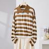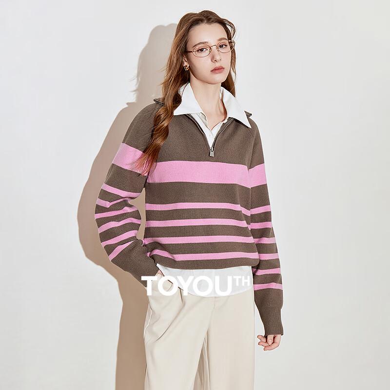 Chuyu Damen Gestreifter Reißverschluss Polokragen Langarm Strickpullover