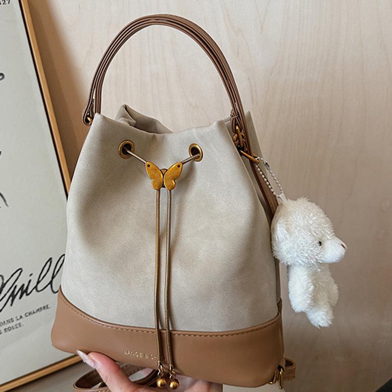 Bucket bag One shoulder messenger bag Women's autumn new niche women's bag Drawstring dual-purpose small backpack