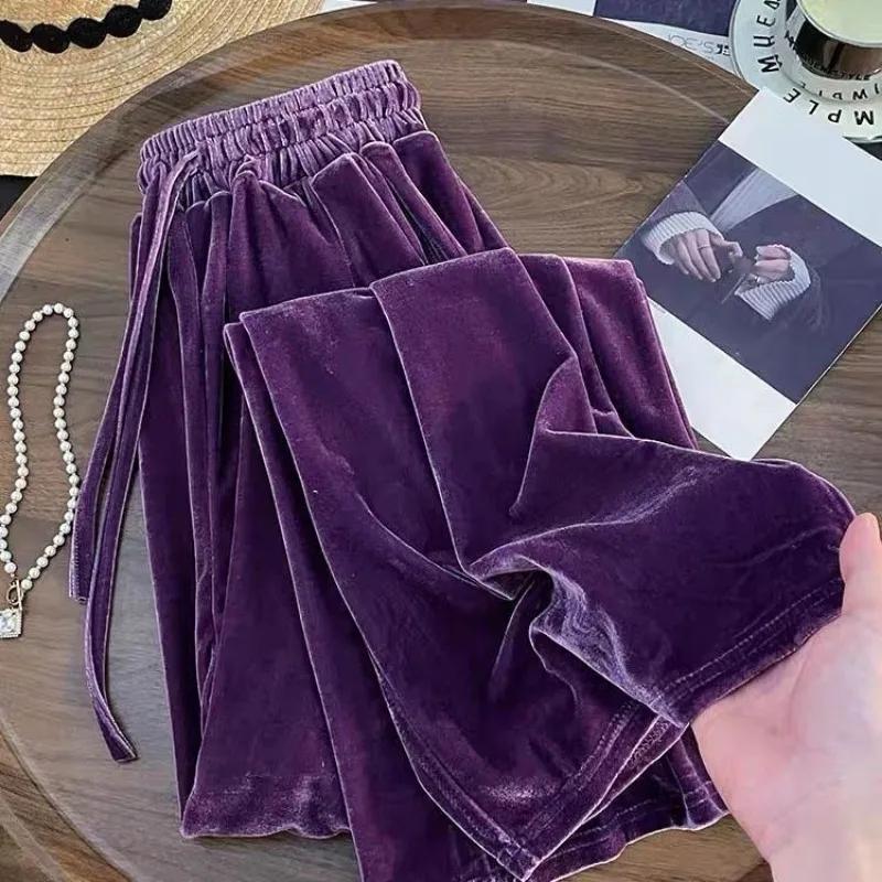 Version Schlicht Locker Drapierend Plus Samt Freizeithose Lila Hochtailliert Slim Samt Weitbeinige Hose Neu Koreanisch