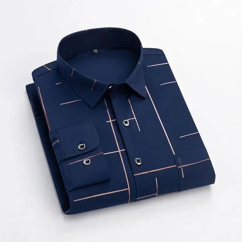 Neuer Stil Bedrucktes Eis-Seiden-Freizeit-Bequem-Mode-Vielseitig-High-End-Herren-Langarmhemd für Junge und Mittelalte