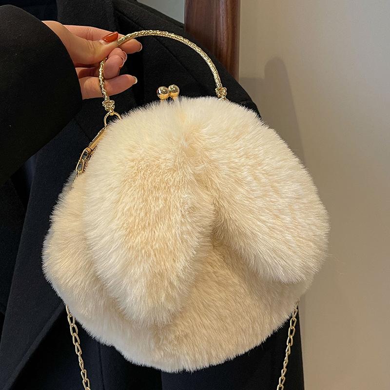 Plüsch Samt Tasche Damen Herbst Neu Nische Kette Umhängetasche Damen Handgehalten Wolle Kleine Runde Tasche