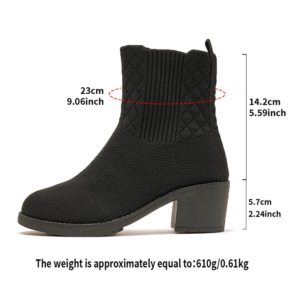 , Verkäufer Damen Gestrickte Dehnbare Stiefel mit Dickem Absatz , Herbst Stoffsocken Niedriger Absatz Stiefeletten Freizeit Atmungsaktiv Kurze Stiefel