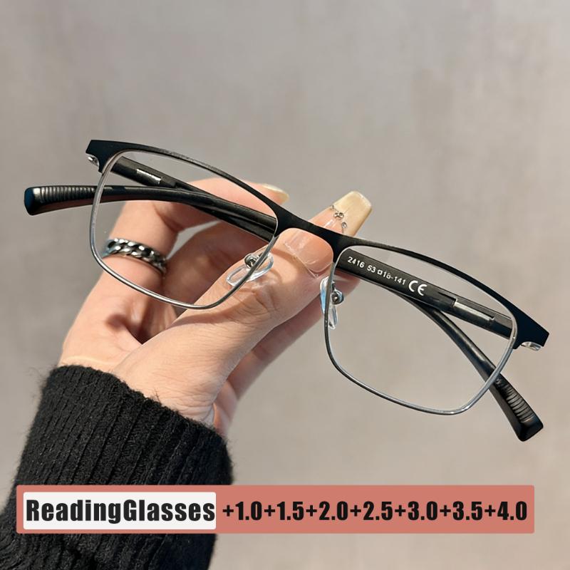 Fashionable Metal Square Frame Blue Light Blocking Reading Glasses Classic Business-Style Presbyopia Glasses with Plus Diopters