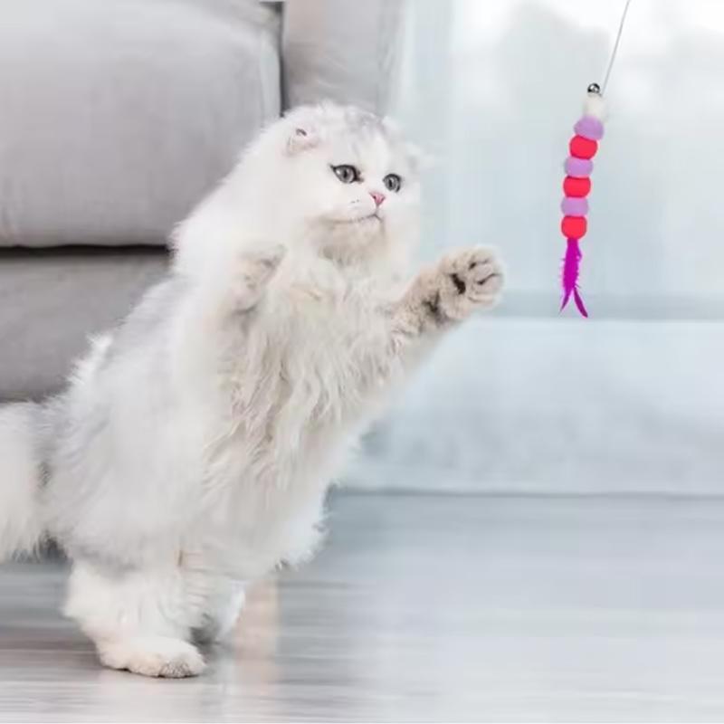 Funny Cat Teaser Interactive Toy Rod with Bell and Feather Toys for Cats Teaser Interactive Toy Rod Pet Cats Toys Stick