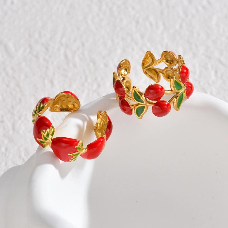 Mode Fruchtstil Edelstahl Offener Ring Emaille Erdbeere Kirsche Design Süß Täglich Party Damenschmuck Geschenke