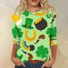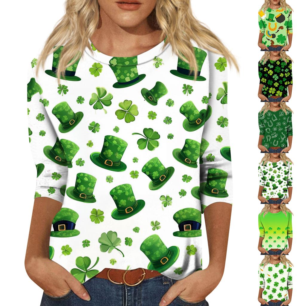 Damen Modisches Lässiges Dreiviertelarm Bedrucktes Rundhals-Top